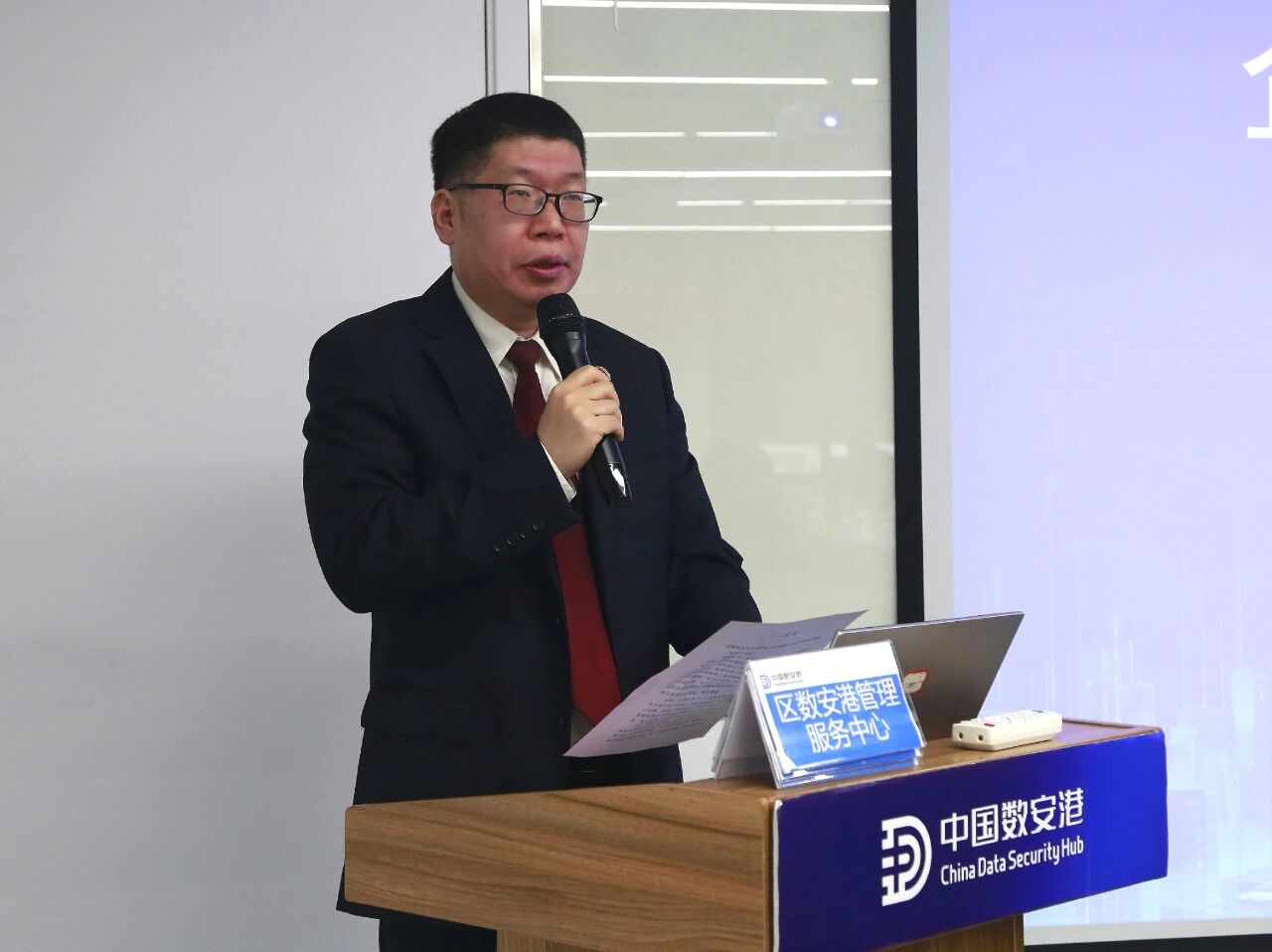 区检察院党组成员、副检察长潘标标致辞欢迎与会嘉宾们的到来,并邀请嘉宾们畅所欲言,共商企业数据安全保护大计。区数安港管理服务中心党组书记戴笑飞出席会议并作了发言。