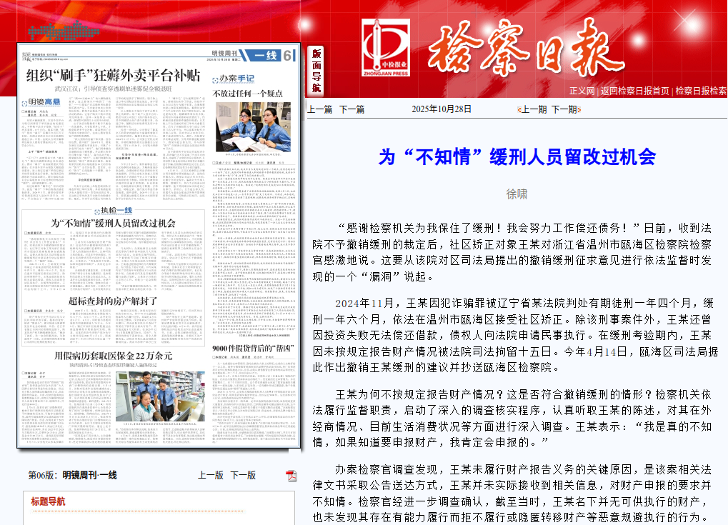 2025年,瓯海区检察院坚持守正创新、聚力提质增效,以更实举措主动担当作为,一批彰显法治温度、展现检察担当的典型案事例与工作亮点,通过文字、视频等多元形式密集亮相中央及省市各级主流媒体,持续奏响瓯海检察奋勇争先、出彩出圈的时代强音。恰逢瓯海区“两会”召开之际,我们特别梳理总结9篇重磅报道,循着媒体视角,一同回望瓯海检察这硕果累累的一年——